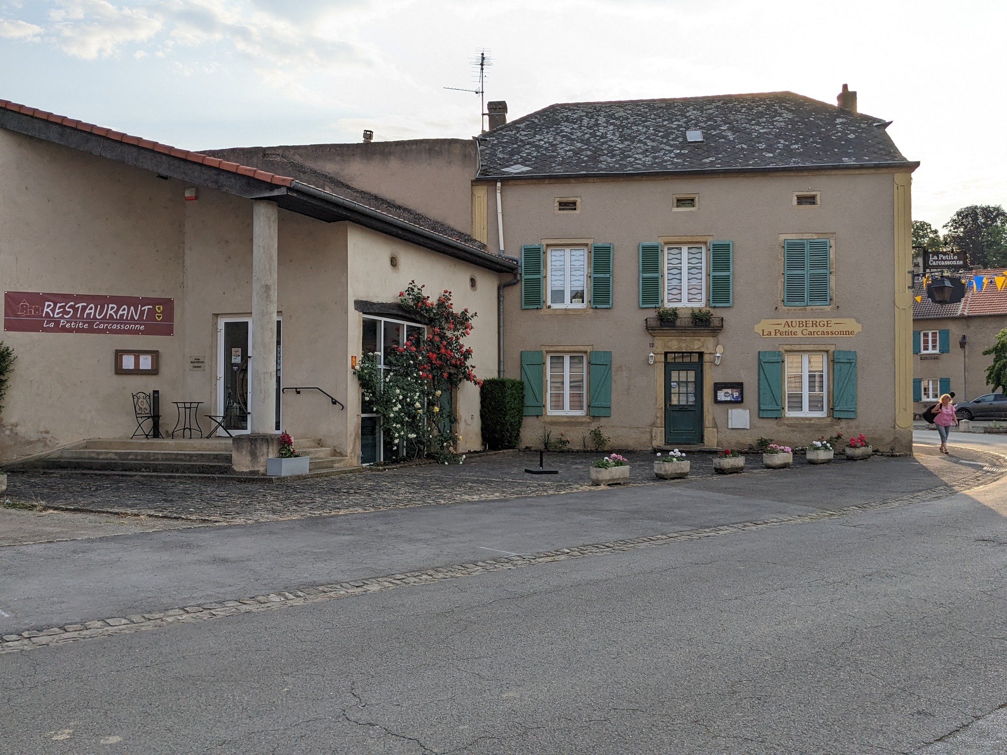 À l’extrême nord de la Moselle, à seulement 19 km de Thionville et tout près de la frontière luxembourgeoise, se dresse Rodemack, une pépite médiévale classée parmi les Plus Beaux Villages de France. Ses remparts, ses ruelles pavées et son charme intemporel lui ont valu le surnom évocateur de « Petite Carcassonne lorraine ». C’est justement au pied de ces remparts, dans ce décor digne d’une carte postale, que vous trouverez l’Auberge de la Petite Carcassonne. Avec ses volets bleus, sa terrasse fleurie et ses murs en pierre, le bistrot de Serge et Sylvie a ce petit air de Provence… mais version lorraine ! Avec de grandes baies vitrées qui baignent la salle de lumière.